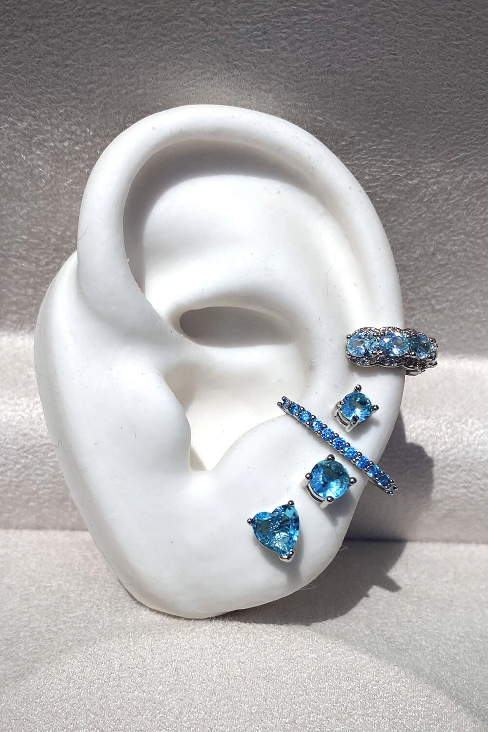 Fake Piercing Earhook Zircônias Azuis Ródio Branco