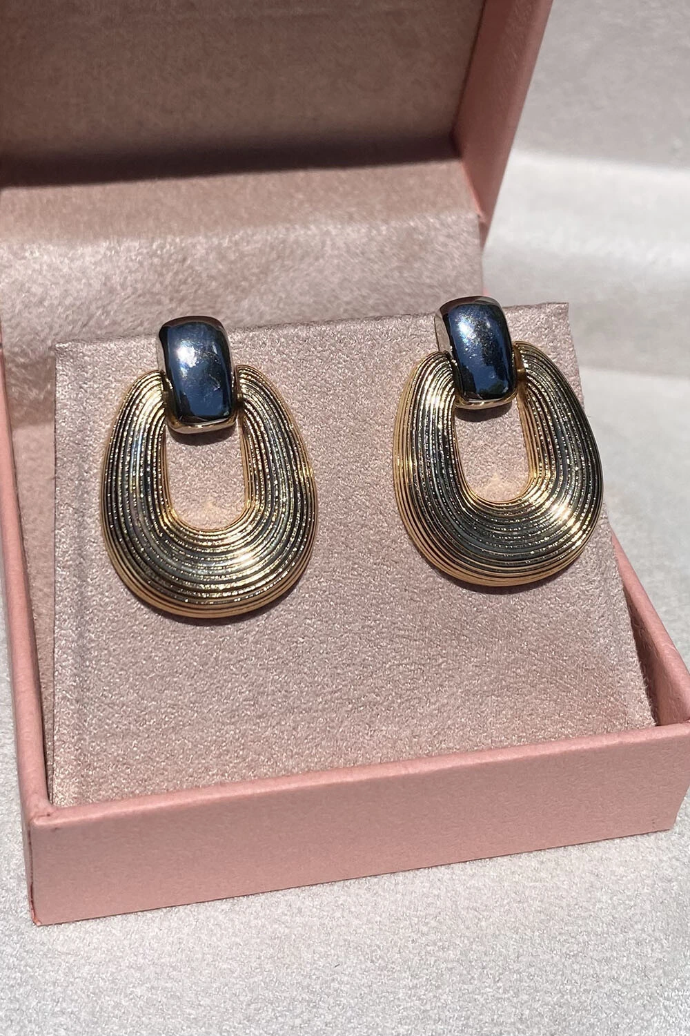 Brinco com mix de texturas e peças retangulares polidas.