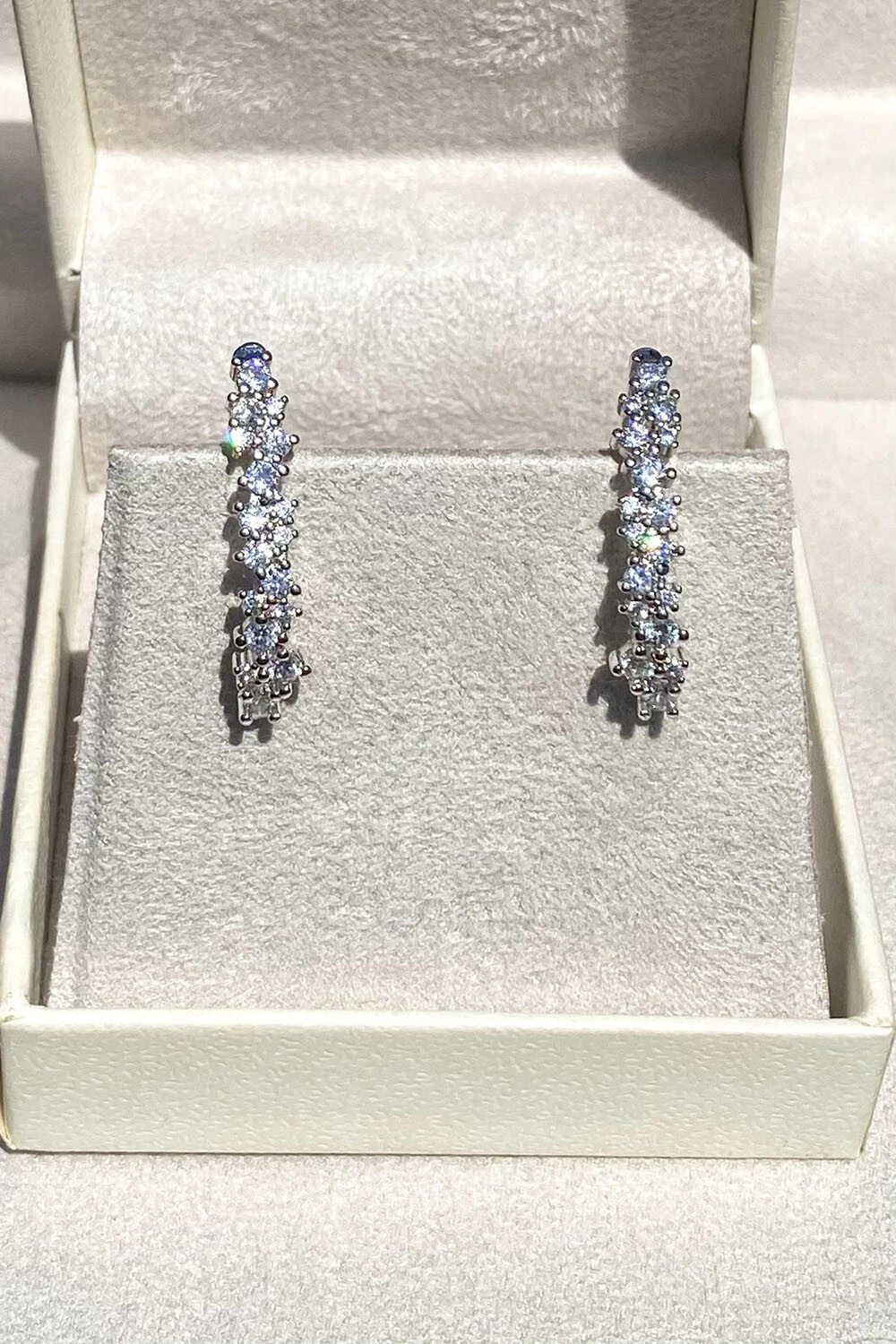 Brinco earhook cravejado com zircônias na cor cristal, metal banhado ródio branco.