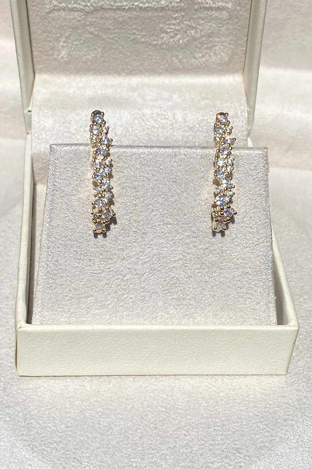 Brinco earhook cravejado com zircônias na cor cristal, metal banhado no ouro 18k.