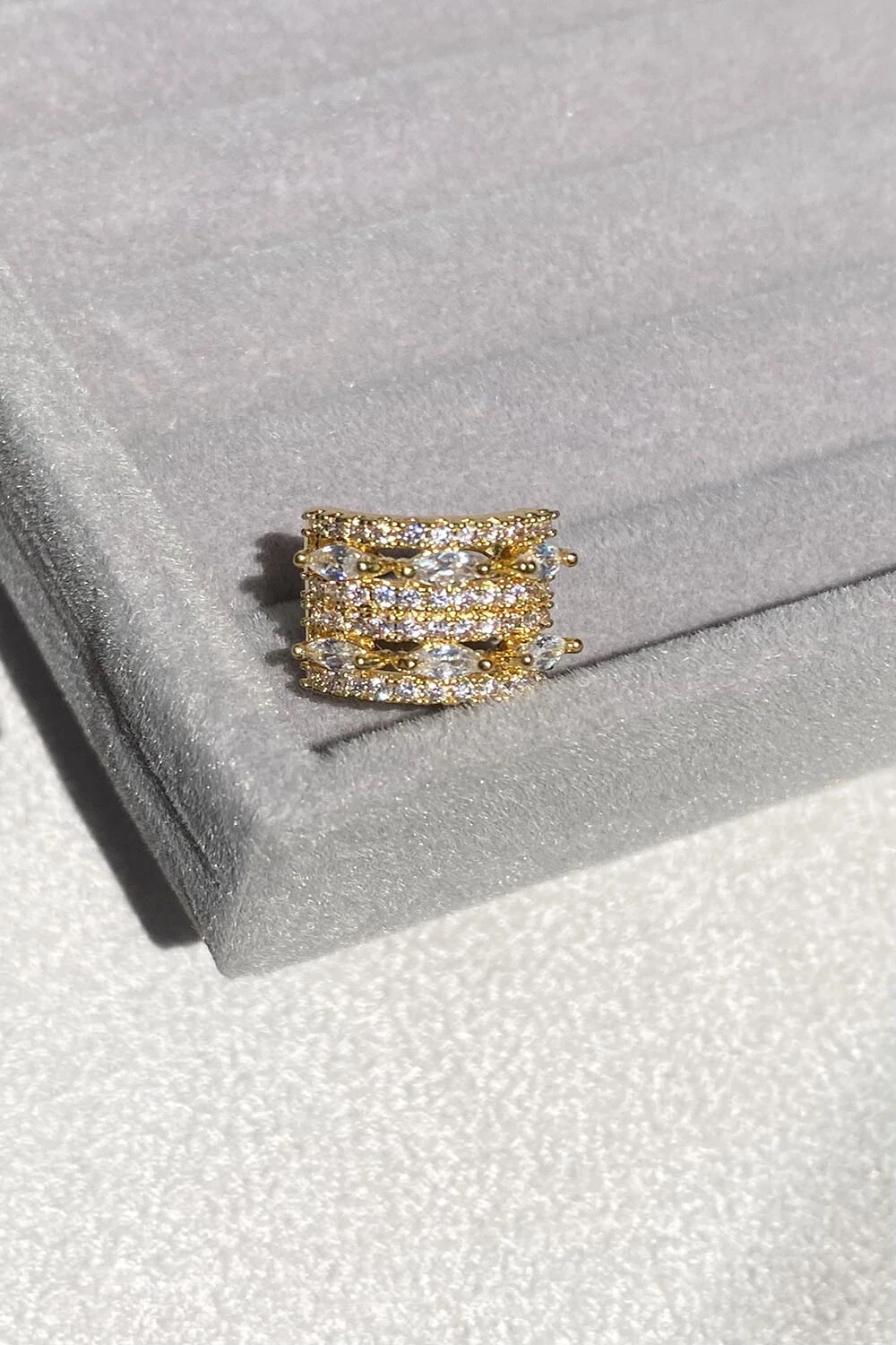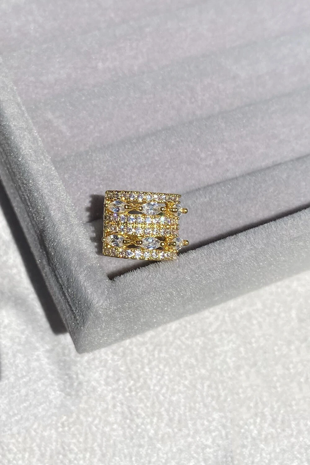 Fake piercing cravejado com zircônias e baguetes cor cristal, metal banhado no ouro 18k.