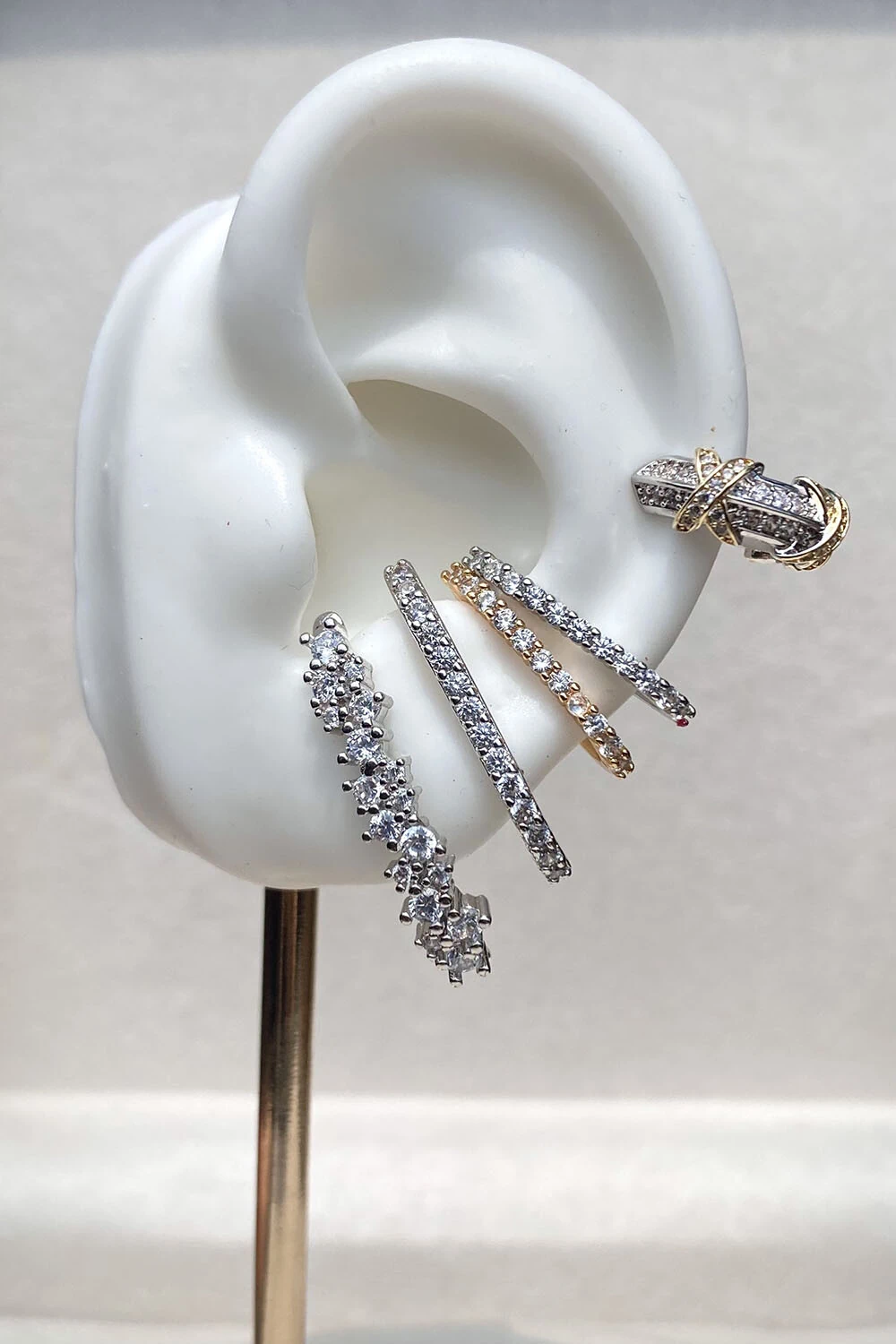 Fake piercing Earhook cravejado com zircônias, metal banhado no ródio branco.