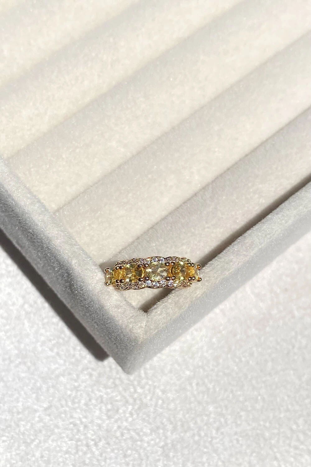 Fake piercing cravejado com zircônias amarela (Yellow Fancy) ovais e em volta cravejada com micro zircônias cristais, metal banhado no ouro 18k.