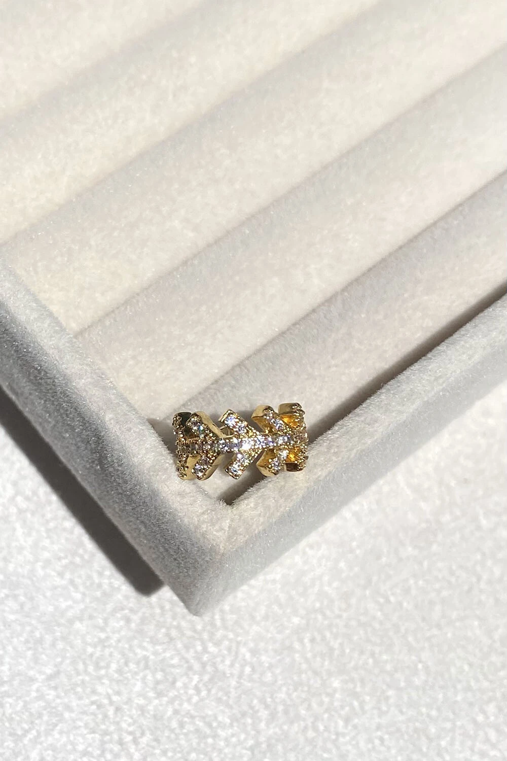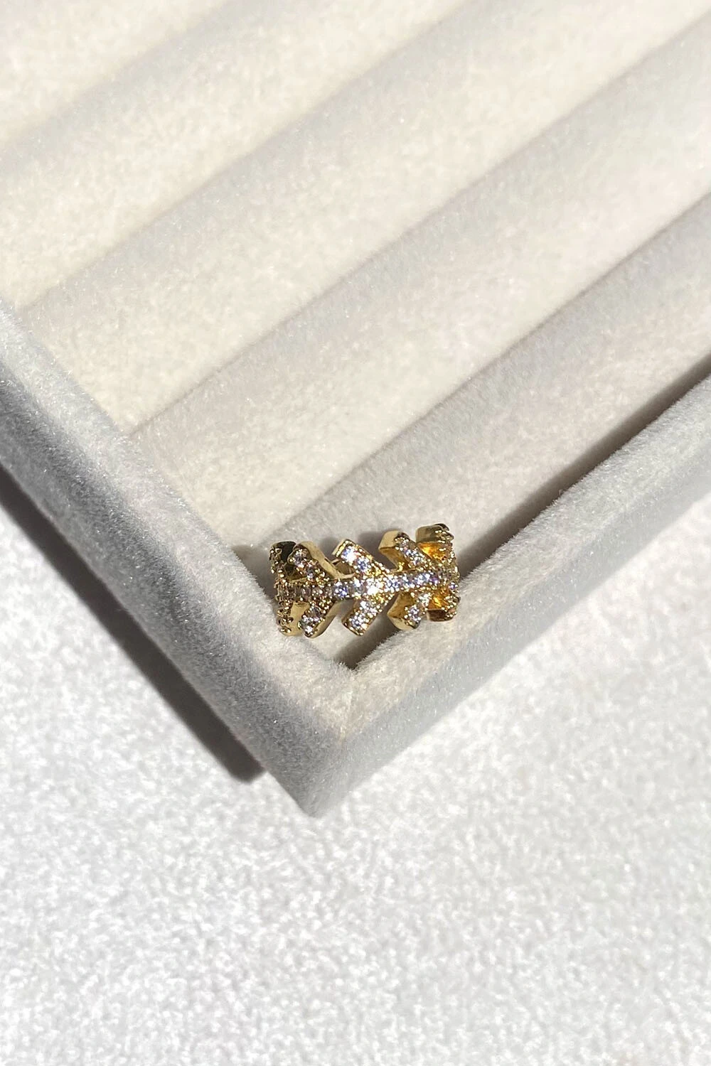Fake piercing com setas cravejado com zircônias cristal, metal banhado no ouro 18k.