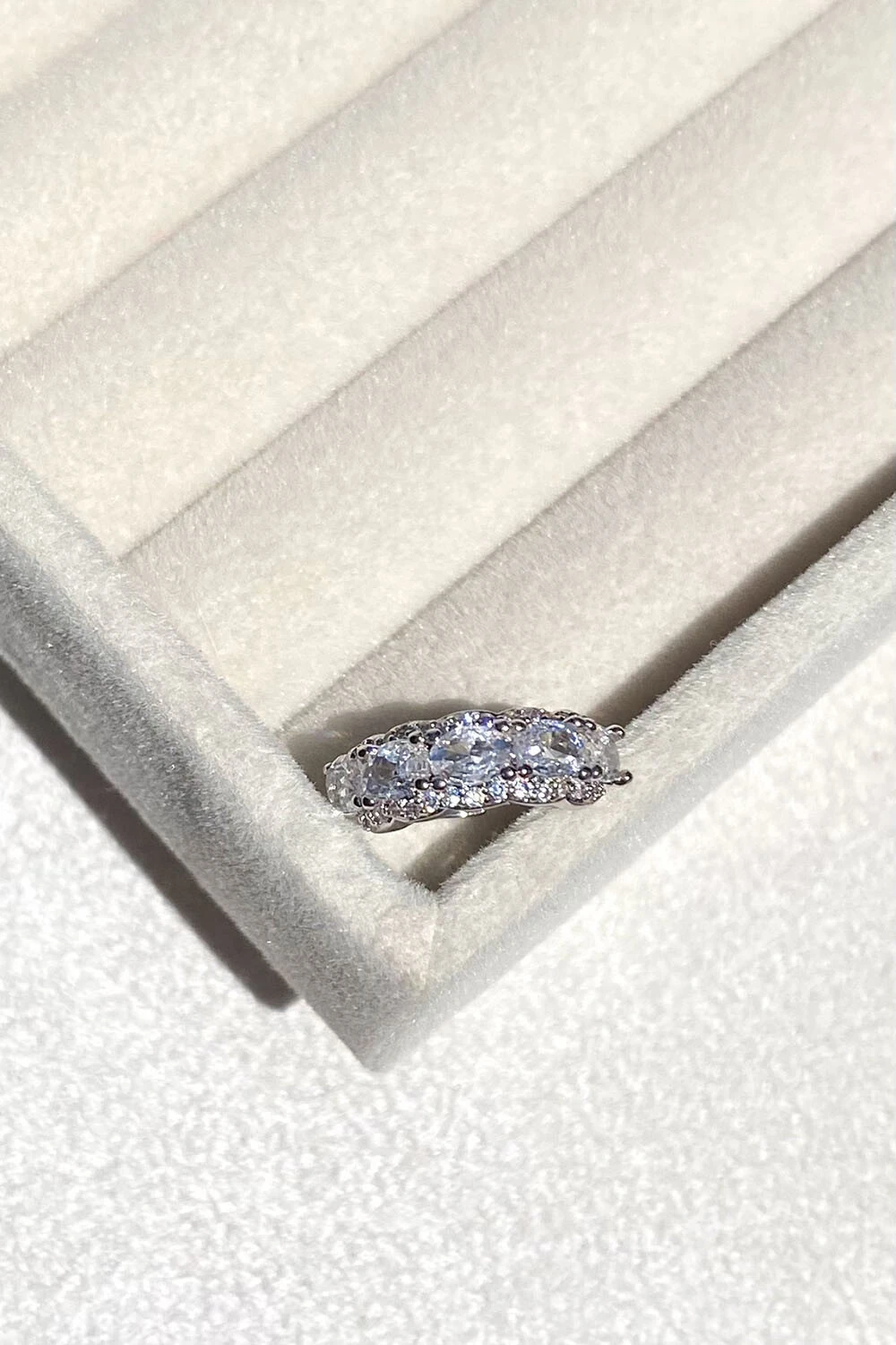 Fake piercing cravejado com zircônias cristal ovais e em volta cravejada com micro zircônias cristais, metal banhado no ródio branco.