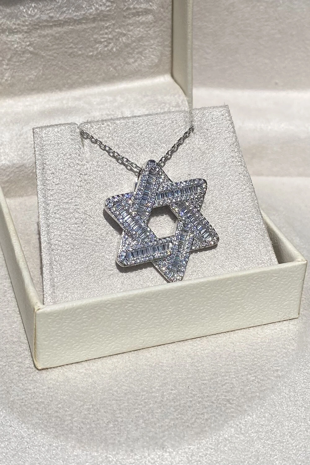 Colar Estrela Davi Zircônias Ródio Branco