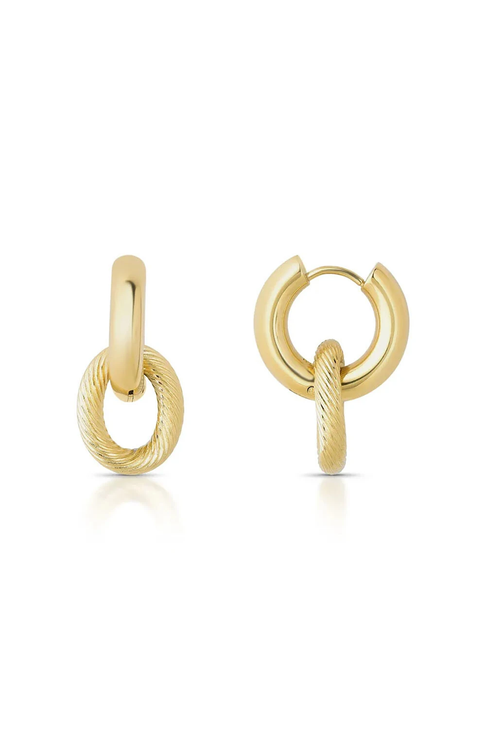 Brinco argola robusta dourado liso e texturizado, criando uma sofisticação