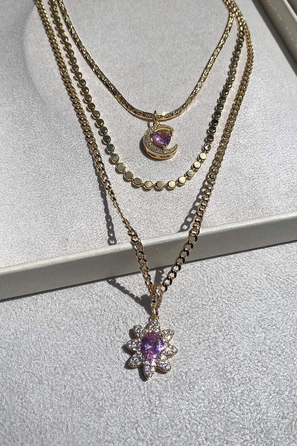 Colar Choker Pingente Lua e Coração Rosa Zircônia