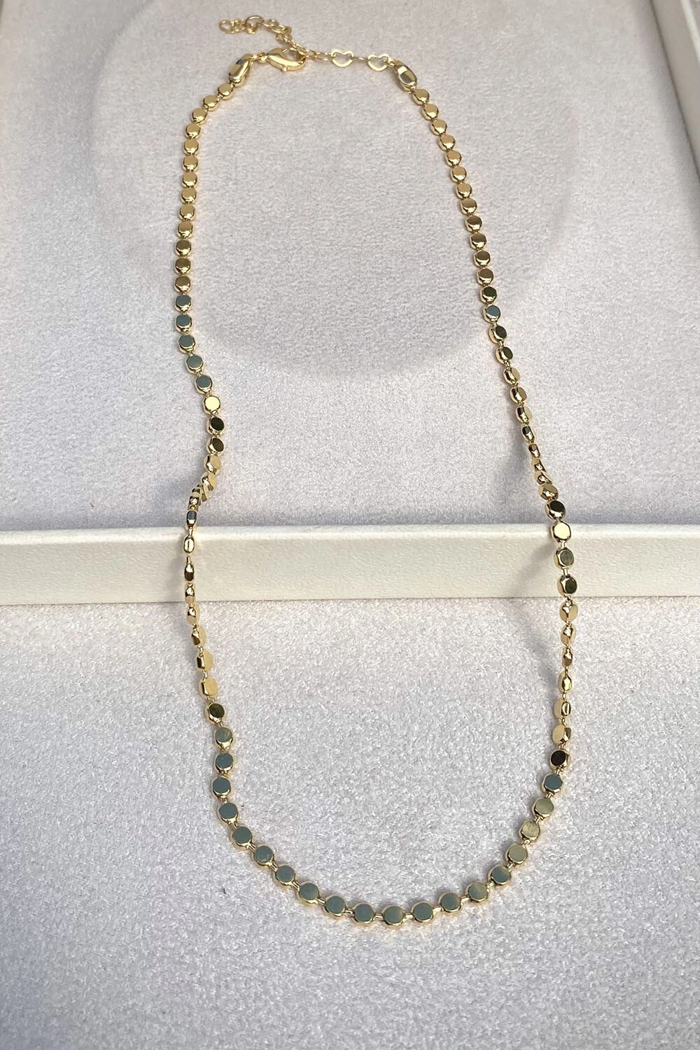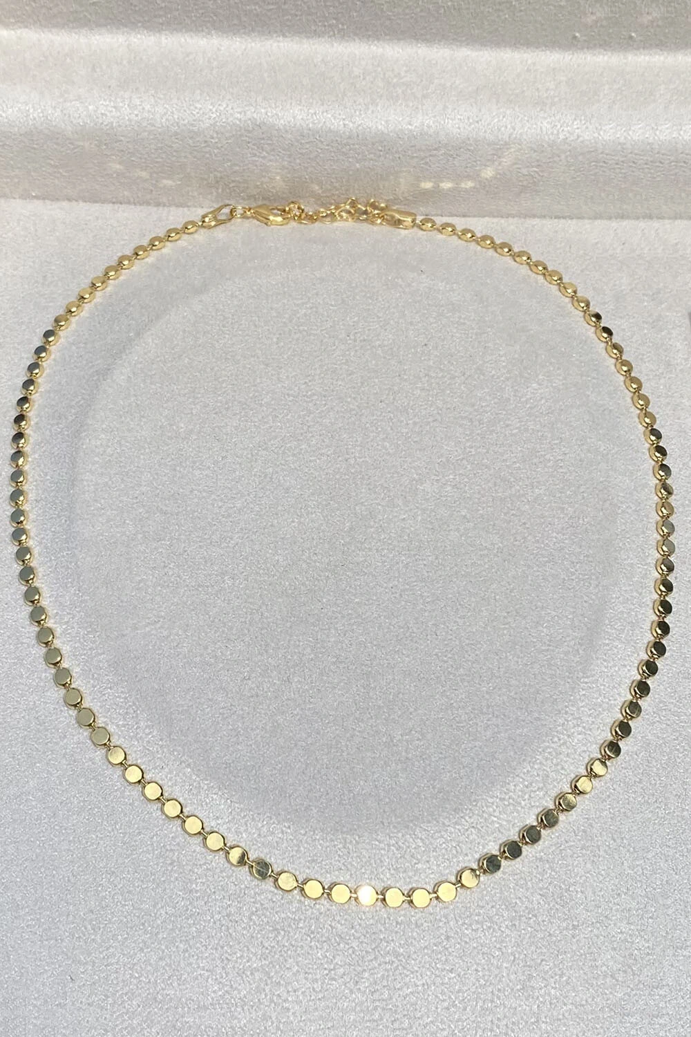 Colar bolinhas achatadas diamantadas, toda delicadeza clássica e elegância, metal banhado no ouro 18k.