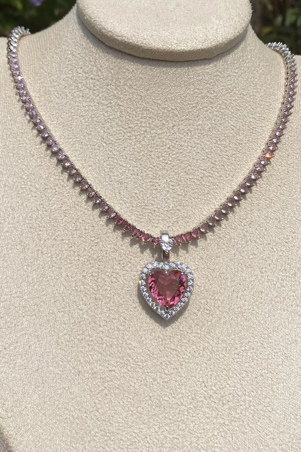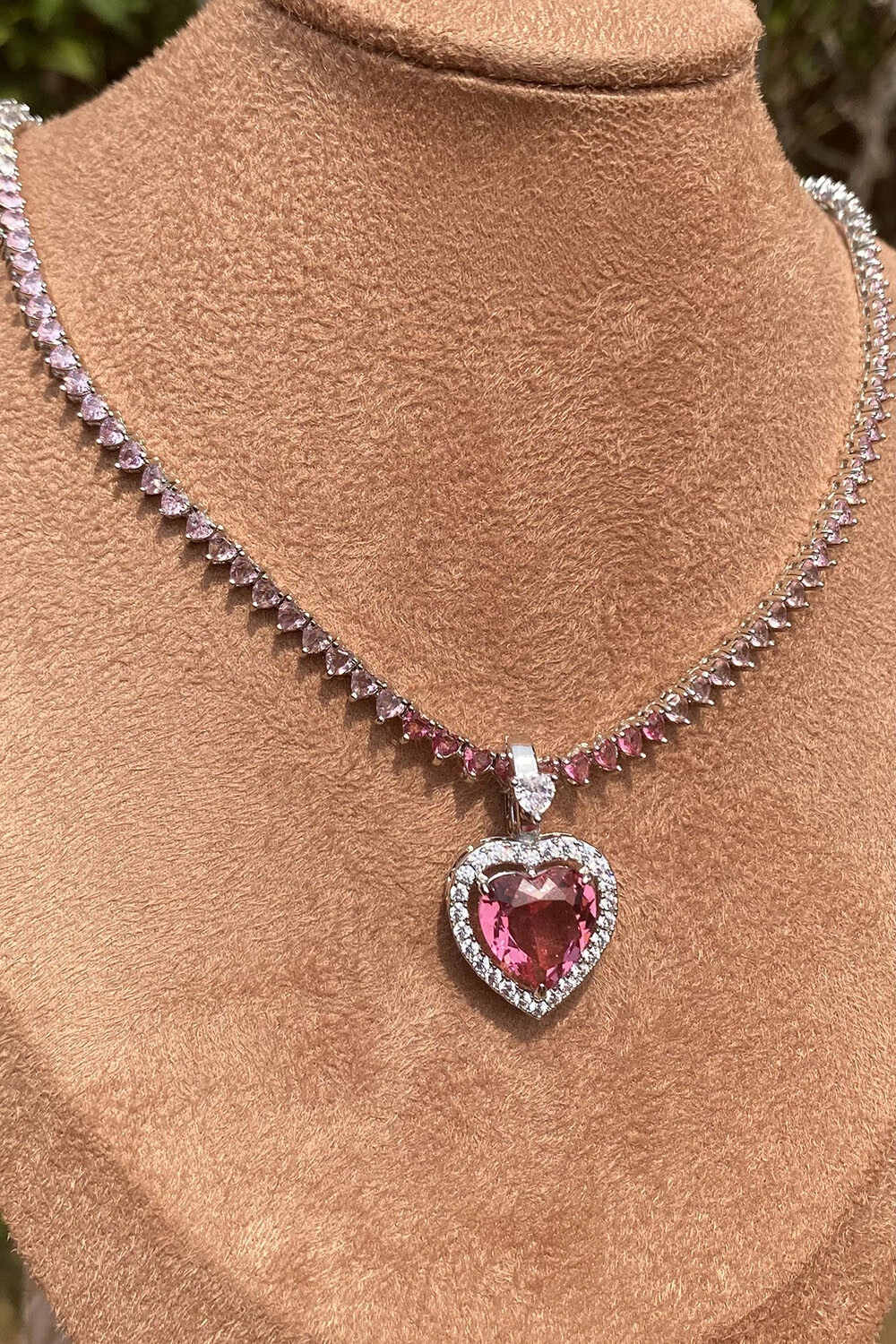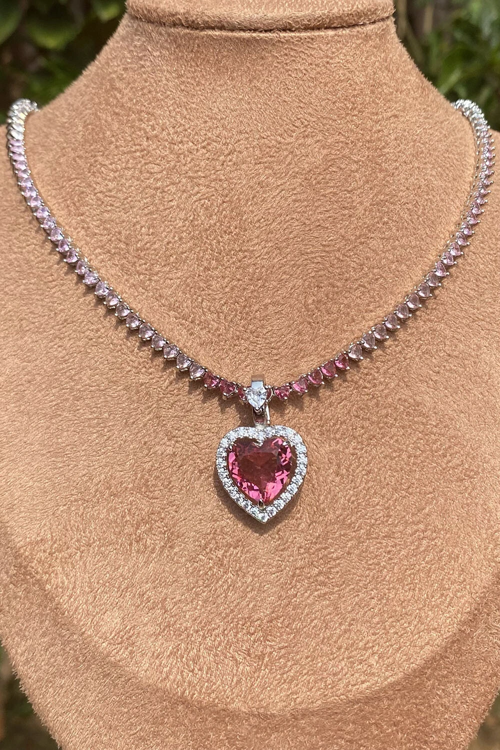 Pingente Coração Rosa Zircônias Ródio Branco