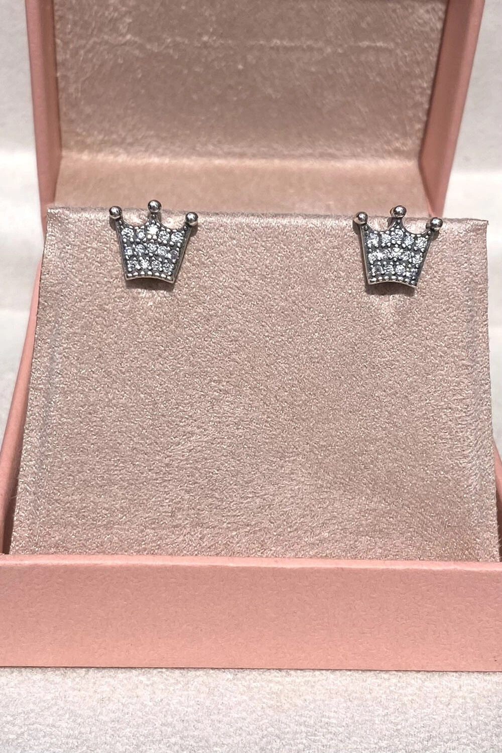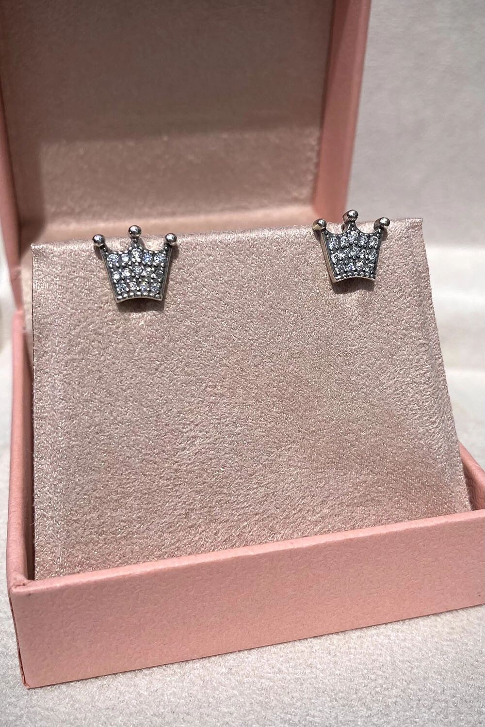 Brinco coroa cravejado com zircônias prata envelhecida, metal prata 925.