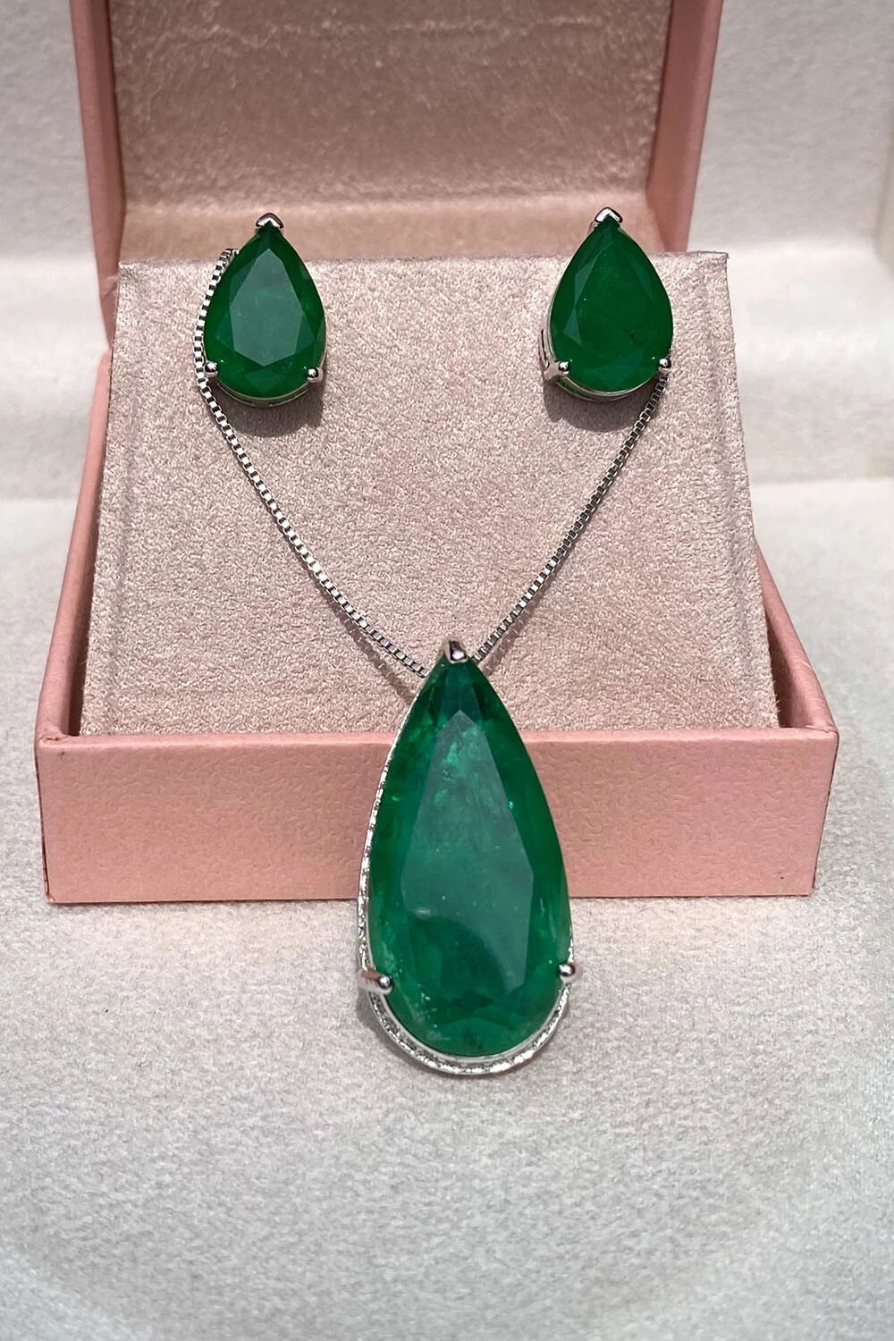 Colar Gota Fusion Esmeralda Ródio Branco