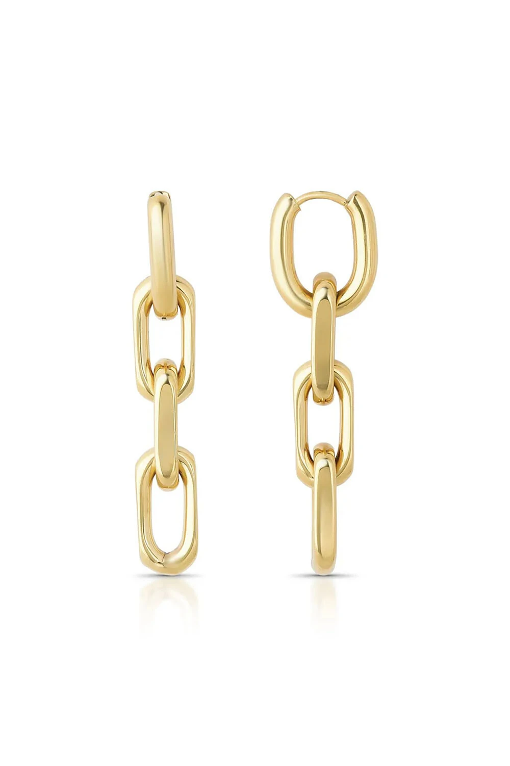 Brinco Argola click logo em elos robustos, tendência de semijoia hipoalergênica chucky (robusta) com acabamento polido, metal banhado no ouro 18k.