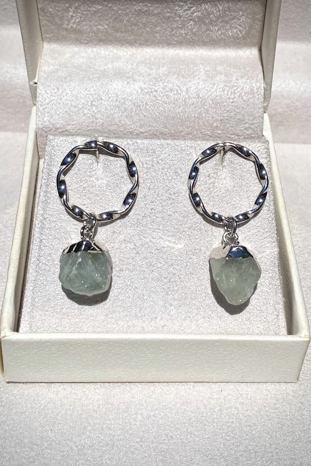 Brinco pedra natural ágata verde com pingente pendurado, tendência de semijoia hipoalergênica, metal banhado no ródio Branco.