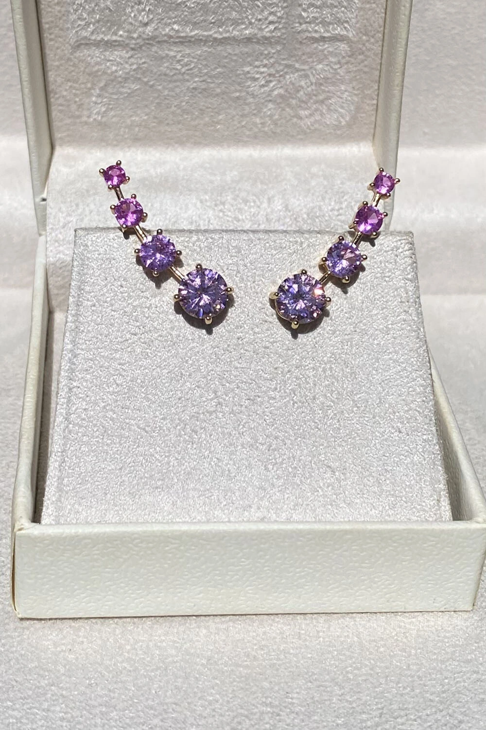 Brinco Earcuff ponto faca com zircônias degrade nos tons de rosa e pink, tendência de semijoia hipoalergênica, metal banhado no Ouro 18k.
