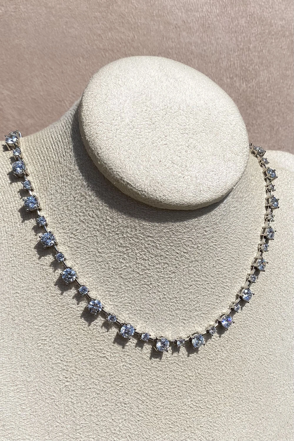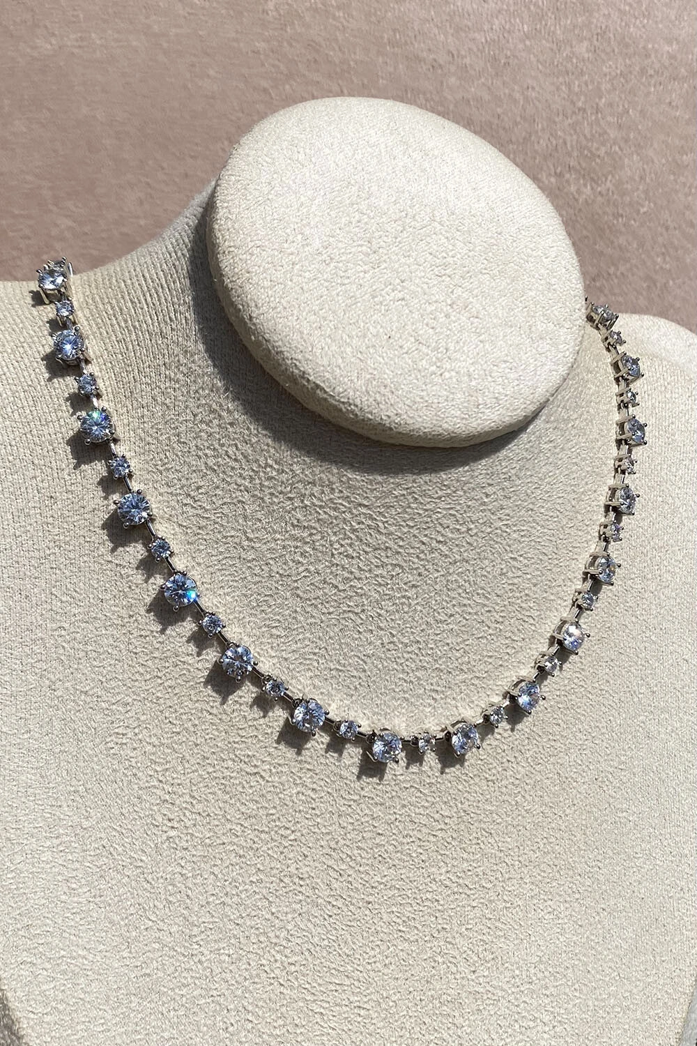 Colar Riviera zircônia Ponto Faca 5mm cristal, com fecho joia gaveta, toda delicadeza clássica e elegância, metal banhado no ródio Branco.