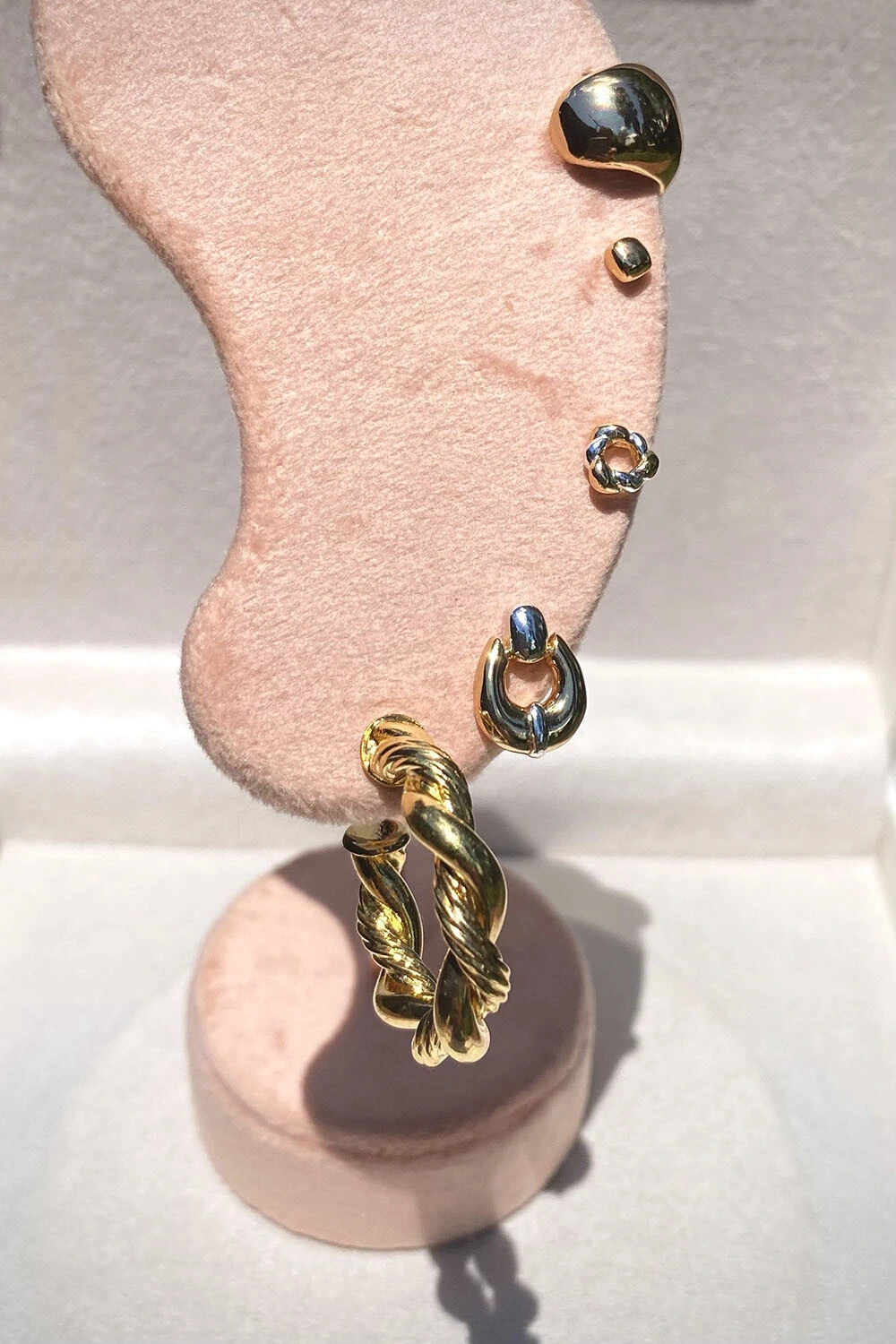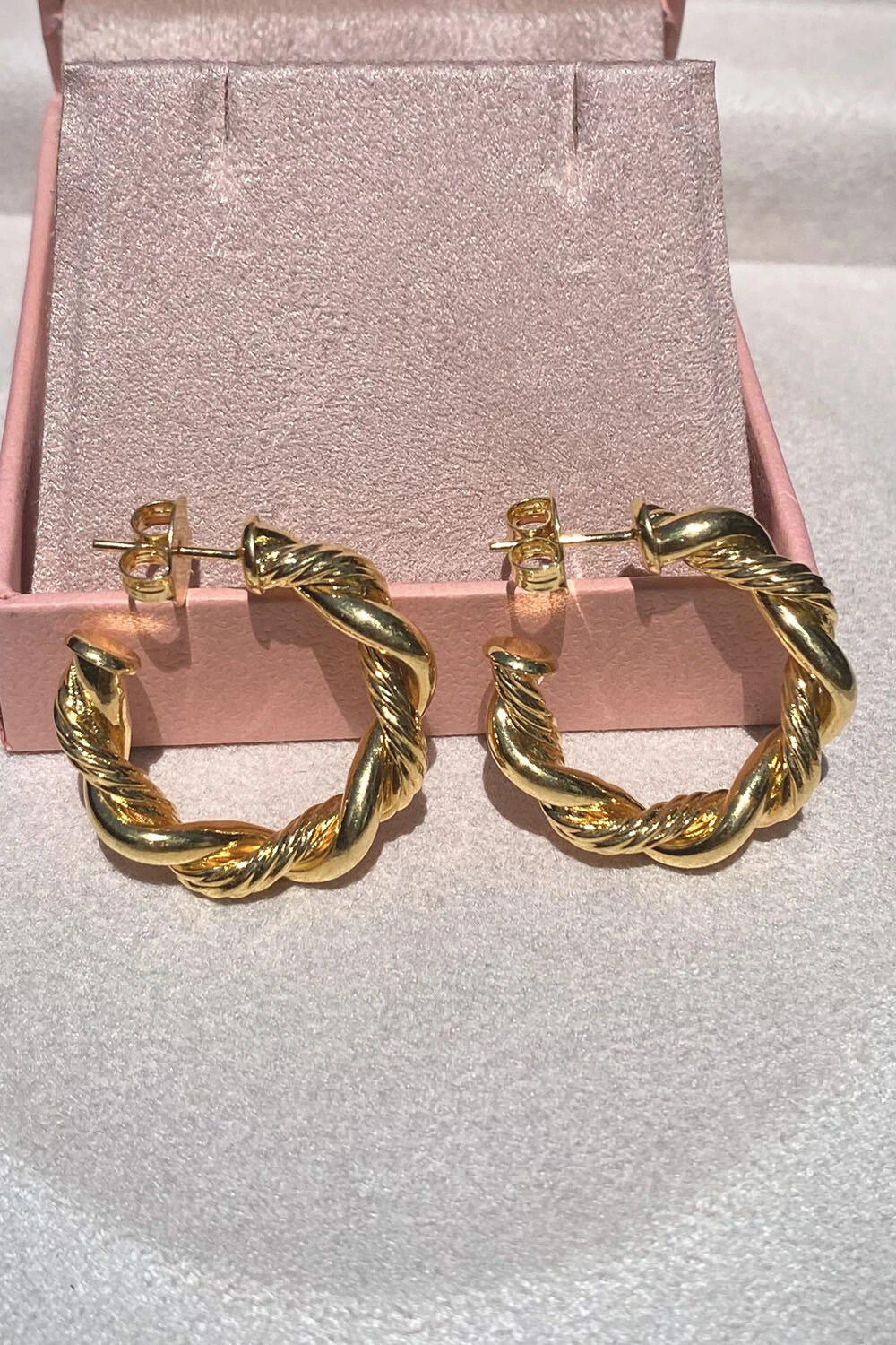 Brinco Argola torcida tubo com detalhes liso e textura diferente, tendência de semijoia hipoalergênica, metal banhado no ouro 18k.