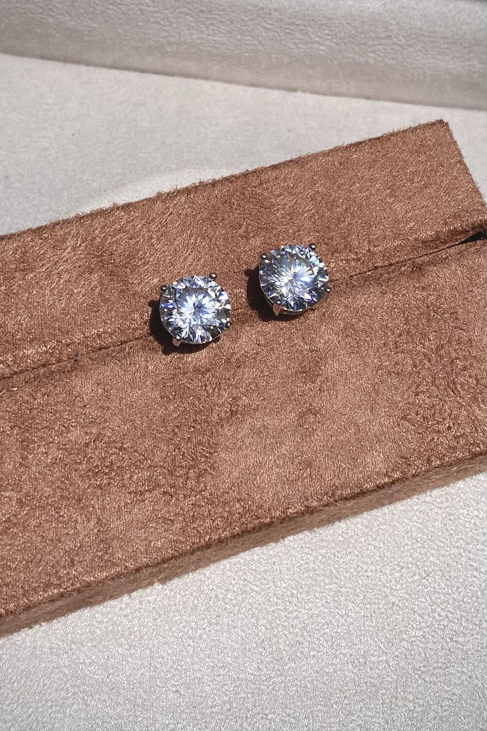 Brinco ponto luz 10mm moissanite, com 4 garras, prata 925 com banhado no ródio branco.
