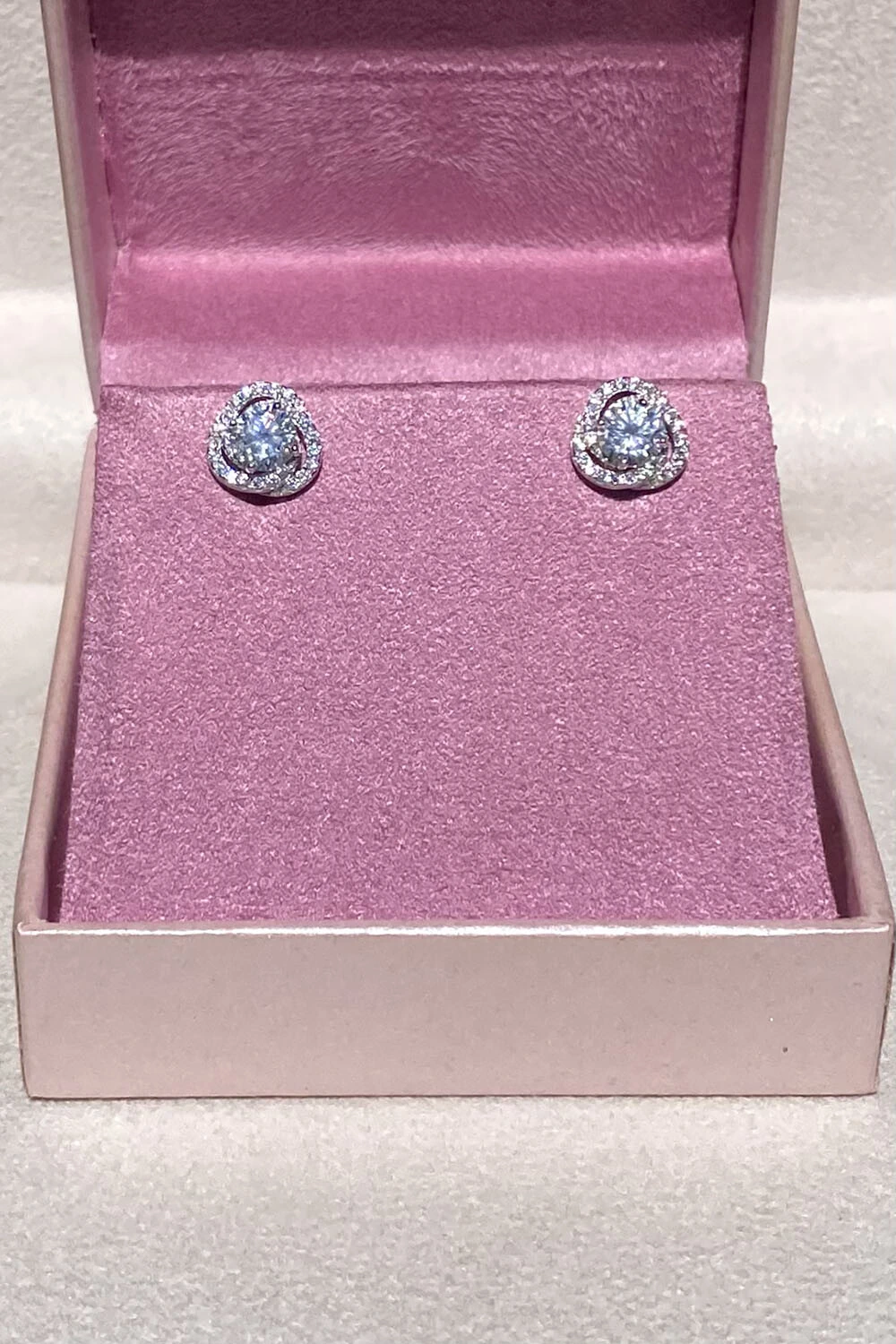 Brinco moissanite caracol ponto luz 5mm, com círculos em volta cravejado com moissanites, prata 925 com banhado no ródio branco.