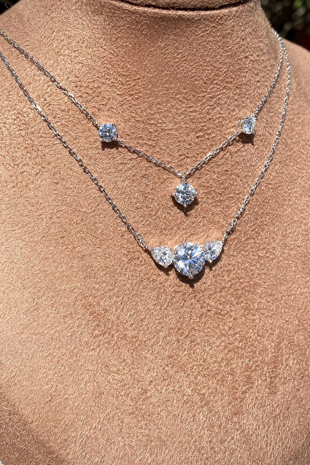 Colar Ponto Luz Moissanite central 6mm e os outros dois de cada lado com 5mm cada, prata 925 com banho ródio Branco.